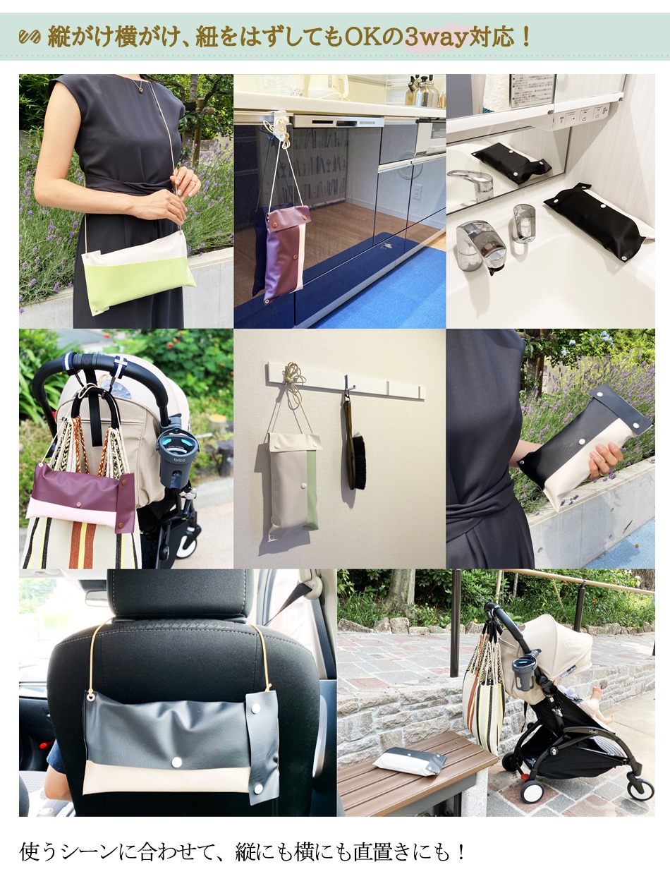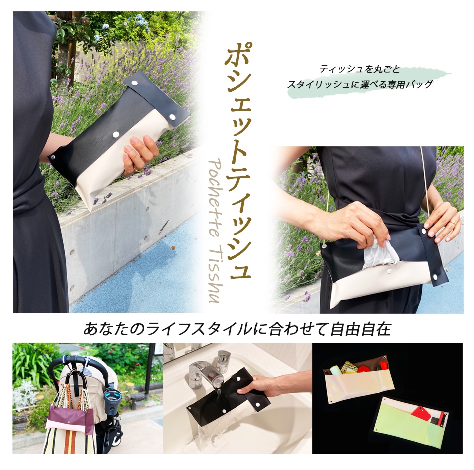 おしゃれにティッシュを丸ごと持ち運べる専用バッグ“ポシェットティッシュ”